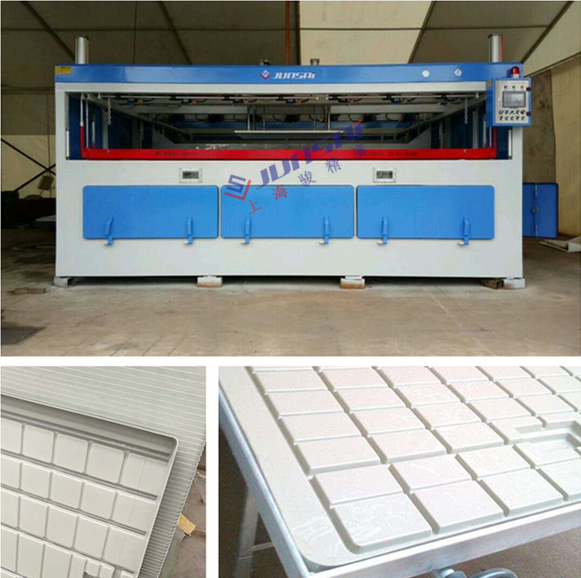 3. 檢查抽氣管道和模具的連接部位對于真空輔助成型很重要。一旦模具安裝完成,要對抽氣系統(tǒng)做相應(yīng)的檢查。在沒抽真空時,沒有裝入物料的大體積模具的真空度約為-0.2(真空計量范圍是0至-1),而小模具應(yīng)該是-0.3 。不過這只適合底板封閉的模具。裝入物料后,真空度也要檢查,假如苗床厚片吸塑機設(shè)備在高于海平面至多500m的環(huán)境下操作,則讀數(shù)至少為-0.9 。如果得到的真空讀數(shù)低于此,要檢查模具和設(shè)備是否存在漏氣現(xiàn)象。因為真空度會影響沖壓時間、加熱時間和冷卻時間,然后影響整個苗床吸塑機設(shè)備的成型周期。