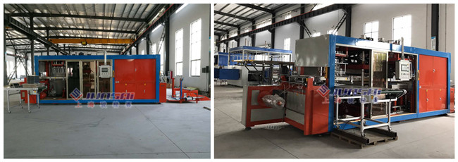 5.    自動(dòng)厚板吸塑機(jī)。工藝步驟:吸盤上料、加熱、真空吸塑成型、自動(dòng)取料、雕刻機(jī)分切